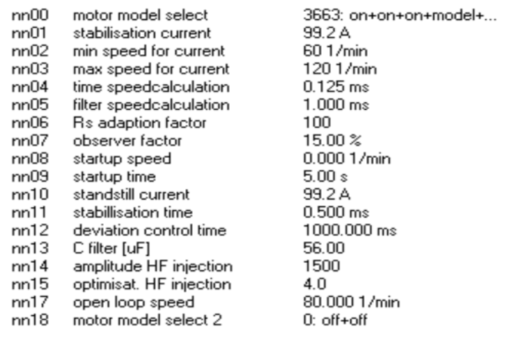 電機(jī)額定電流為194A,電機(jī)轉(zhuǎn)速750轉(zhuǎn),額定扭矩1680NM,