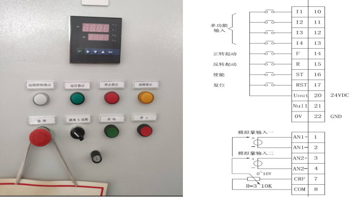 模擬量輸入1通道接本地電位器,模擬量輸入2通道接遠(yuǎn)程4-20mA。
