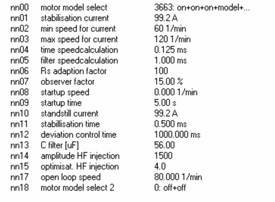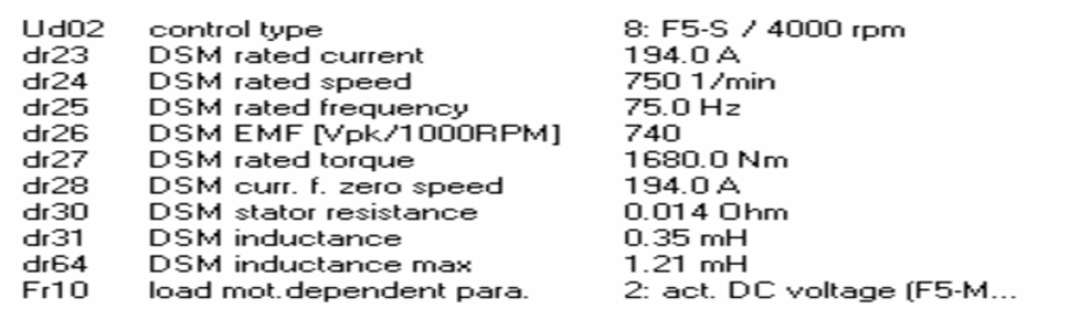 在不帶濾波器且電機軸上沒有負載的情況下,按照電機參數(shù)進行 自學習。Dr30:2倍相電阻,Dr31,Dr64:2倍相電感。