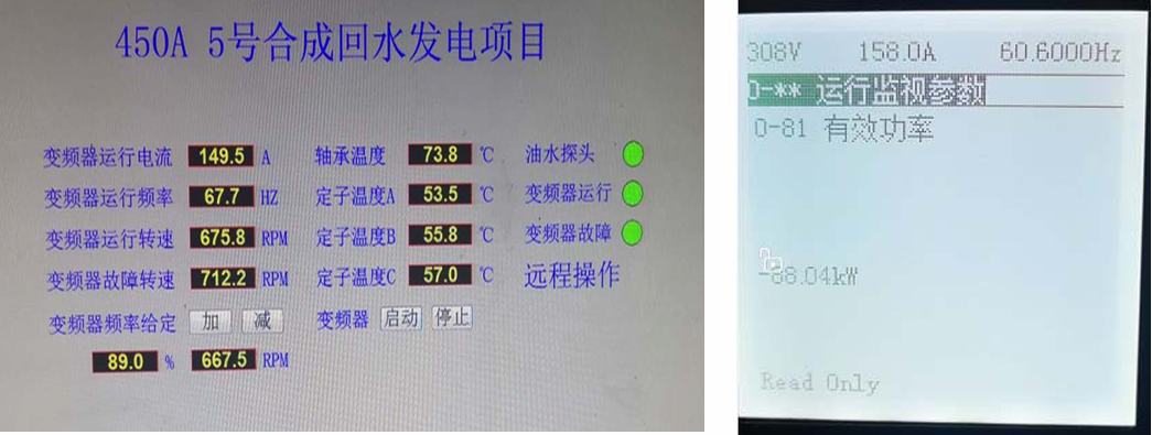 理想狀態(tài)下(水塔高10m,水流量每小時4000立方至5000立方),根據(jù) 掛在進線電源的前端的電度表顯示,四象限變頻器機組每小時向電網(wǎng) 輸送電力在80-90KW左右,(變頻器在滿載情況下本身損耗不超過3%) 80kW/時,相當于80度電。算1.0塊/度,就是賺80塊/時。 一天運行24小時,相當于2000塊/天。一年300天工作天,即60萬/年。