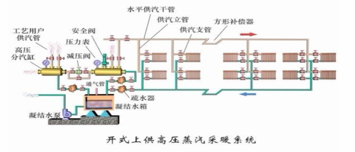 河南新鄉(xiāng)心連心化肥廠有一個如圖所示的系統(tǒng),靠疏水器后的余壓(為滿足輸送過程和終端利用所需壓力的多余部分過高壓力能)輸送凝水的方式,通常稱為余壓回水。余壓回水設(shè)備簡單,是應(yīng)用最為普遍的一種凝水方式。
