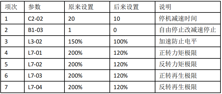 d.發(fā)現(xiàn)變頻器停止設(shè)定為”自由停車”,此時(shí)變頻器不輸出,鋼繩和圓盤在不受控情況下,可能堵住巖石洞口。